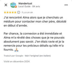 Je vous accompagne dans la communication avec vos défunts et vous transmets les messages qu’ils ont besoin de vous adresser. Le but d'un contact médiumnique est celui d'avoir une préuve de la survie de l'âme ; parler avec nos défunts nous permet de renouer un lien symbolique avec eux et de retrouver une forme d’apaisement intérieur.